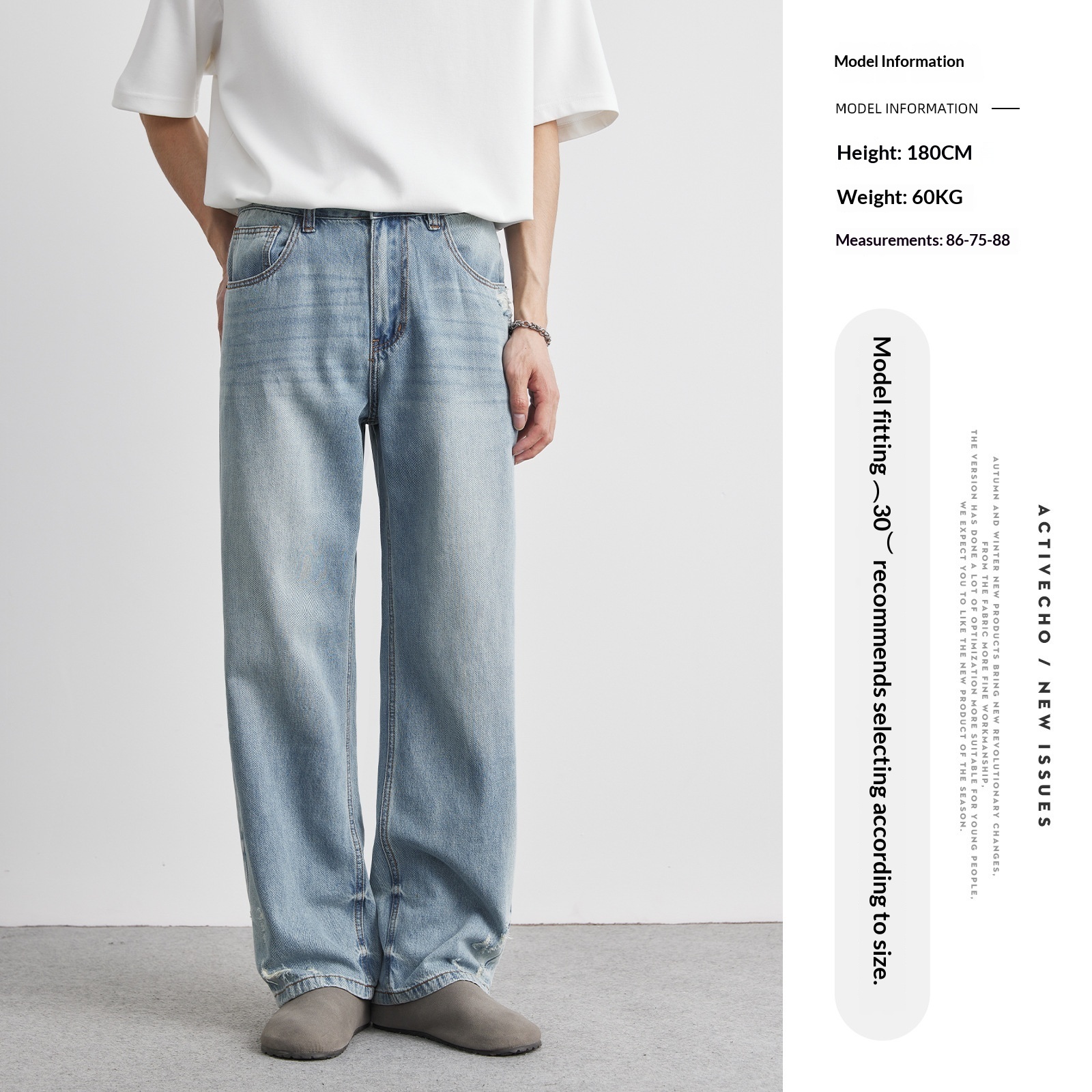 - Distressing: Strategically placed rips and abrasions for a contemporary edge