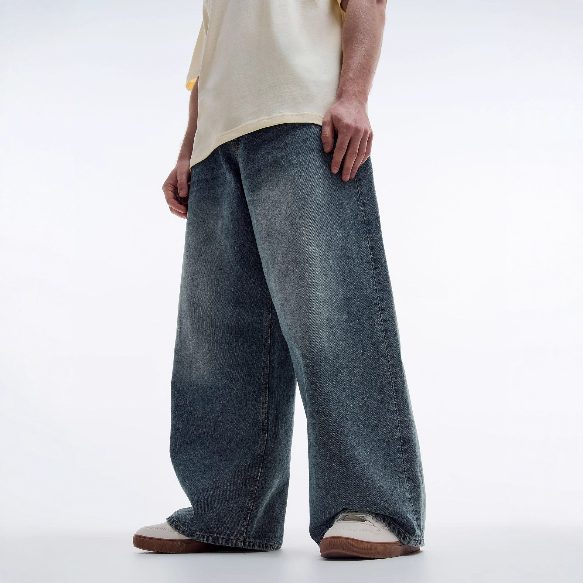 - Straight-leg silhouette with a regular baggy fit; relaxed through seat and thigh