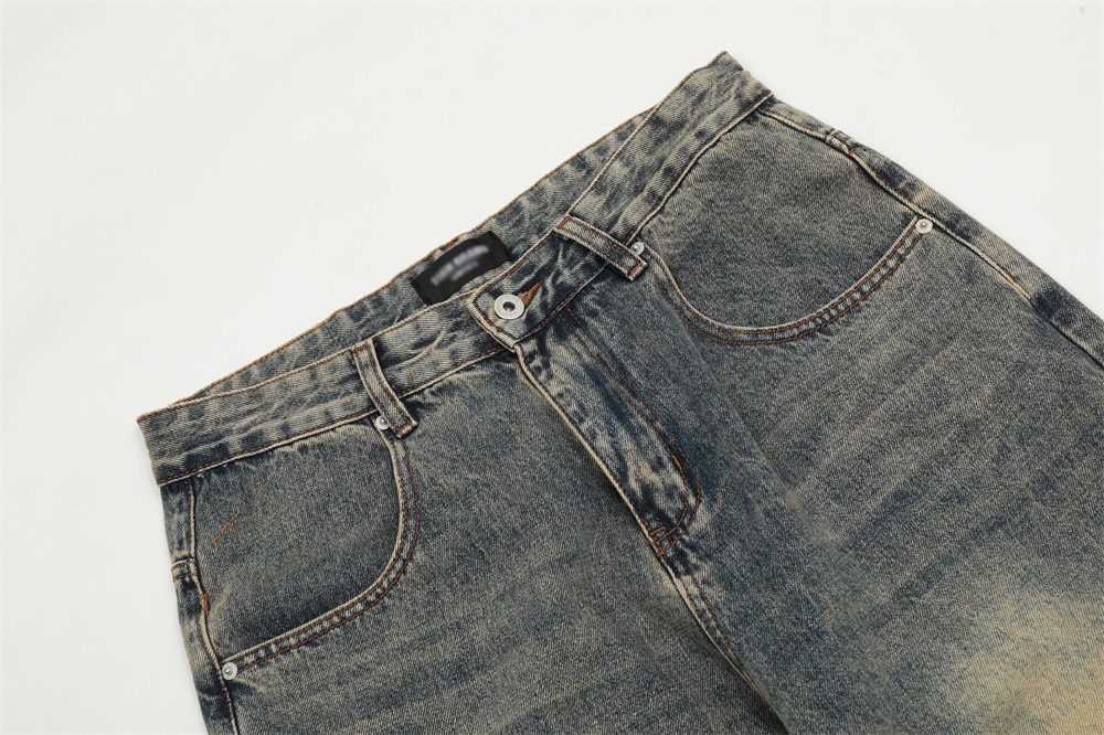 Bring vintage character to your wardrobe with the Washed Yellow Worn Jeans for men—crafted in a regular waist with a baggy silhouette and finished in a Retro Blue wash that looks authentically lived-in.