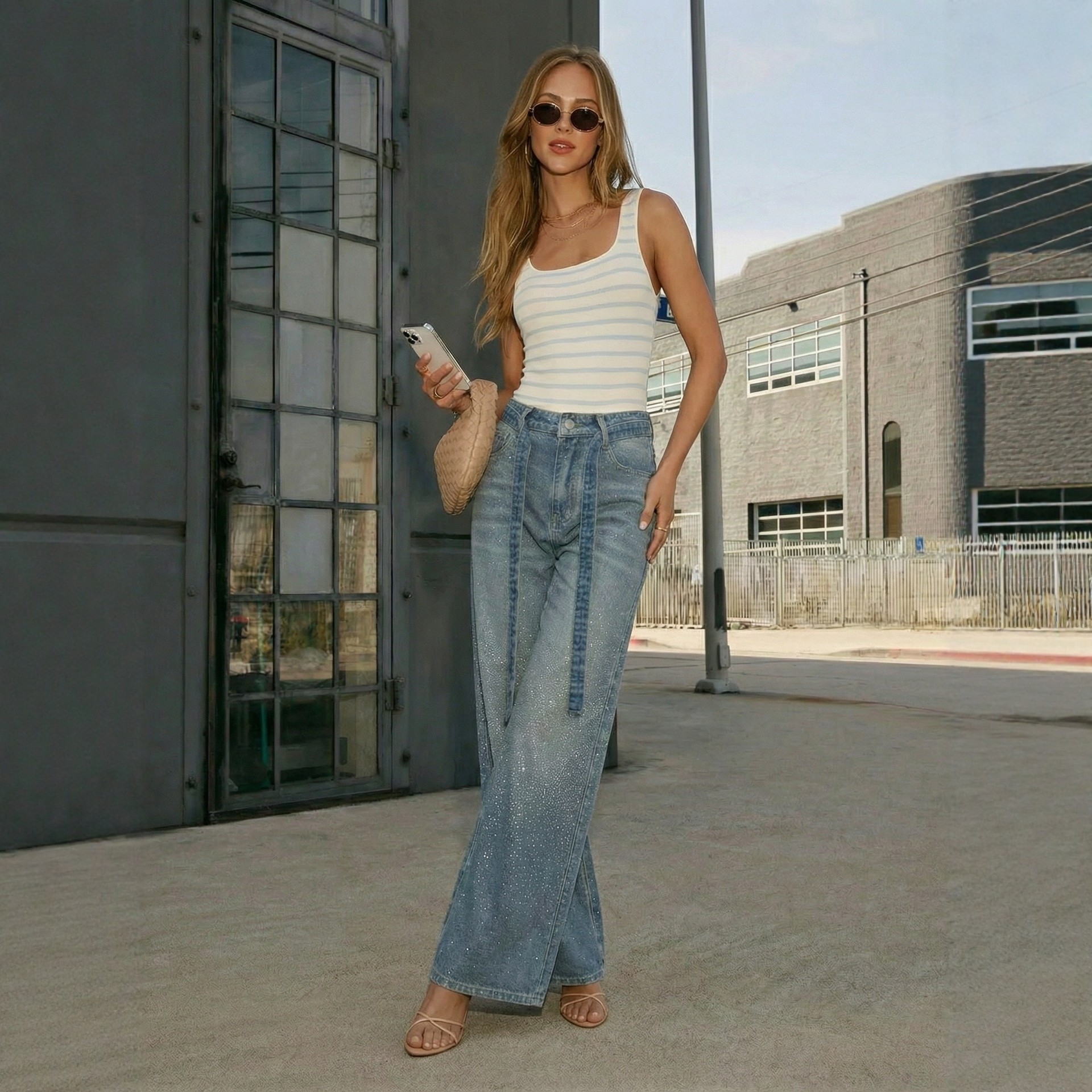 The high waist defines the midsection and visually lengthens the legs, while the wide leg drapes from hip to hem without clinging for all-day comfort. The relaxed cut allows airflow and mobility, ideal for commuting, travel, or casual office settings. Style with fitted tees, tucked blouses, or cropped knits to emphasize the waist. Pair with sneakers for a laid-back look, heels for a refined finish, or ankle boots for transitional seasons. The minimal detailing and classic washes make these jeans a reliable foundation for both casual and polished outfits.