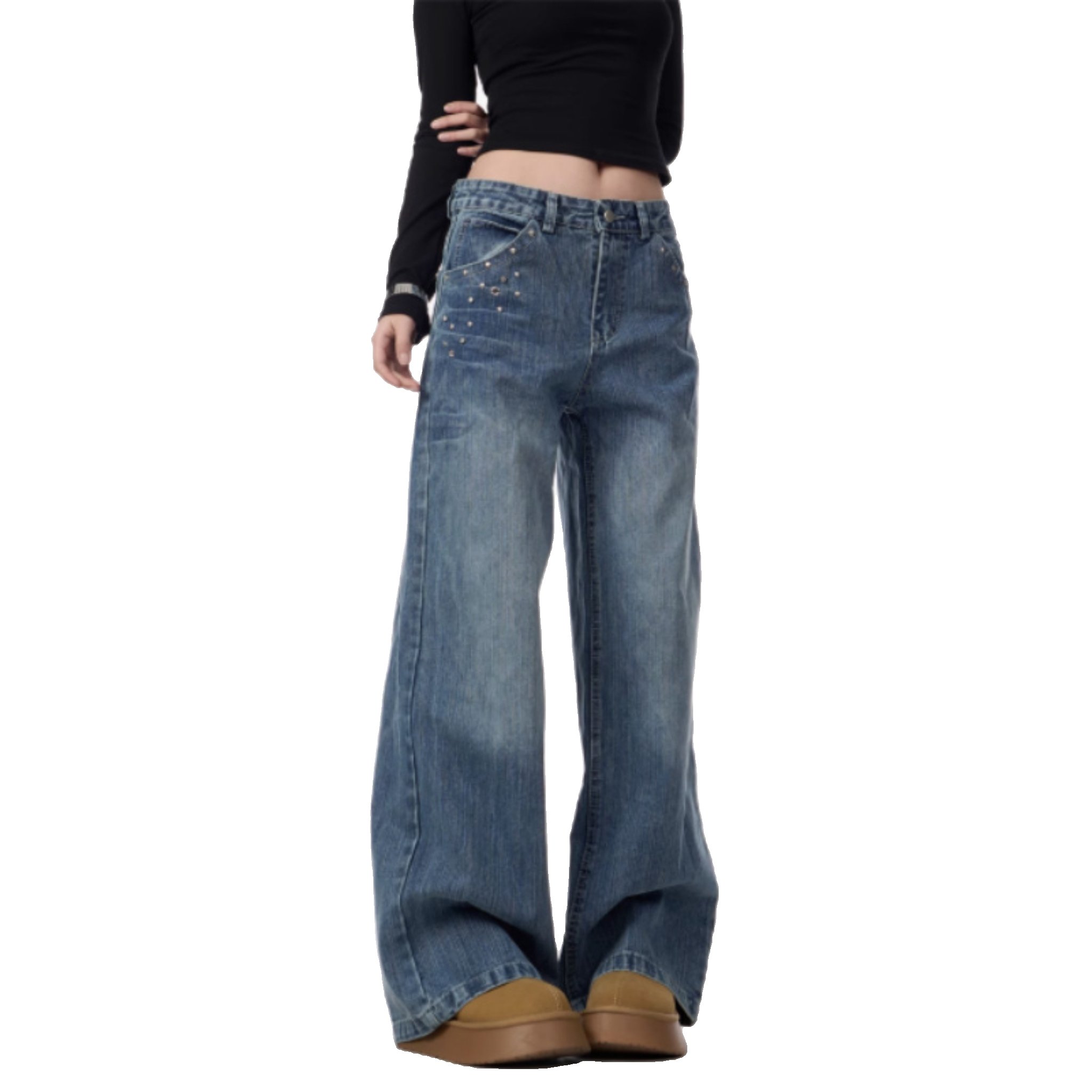 Elevate everyday style with Women’s Rivet High Waist Wide Leg Jeans—baggy straight trousers engineered for modern comfort and timeless structure.